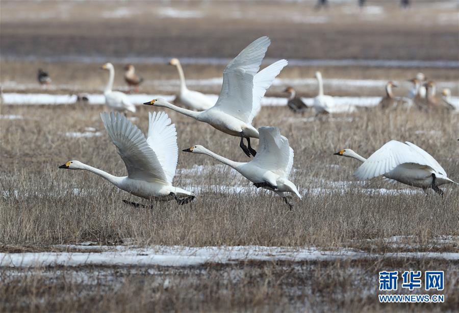 這是4月1日在張北縣黃蓋淖國家濕地公園拍攝的候鳥。近日,成群的候鳥飛臨壩上地區(qū)的河北省張北縣黃蓋淖國家濕地公園。近年來,張北縣不斷加大生態(tài)建設力度,黃蓋淖國家濕地公園已成為多種候鳥遷徙的中轉(zhuǎn)站和棲息地。 新華社記者楊世堯攝