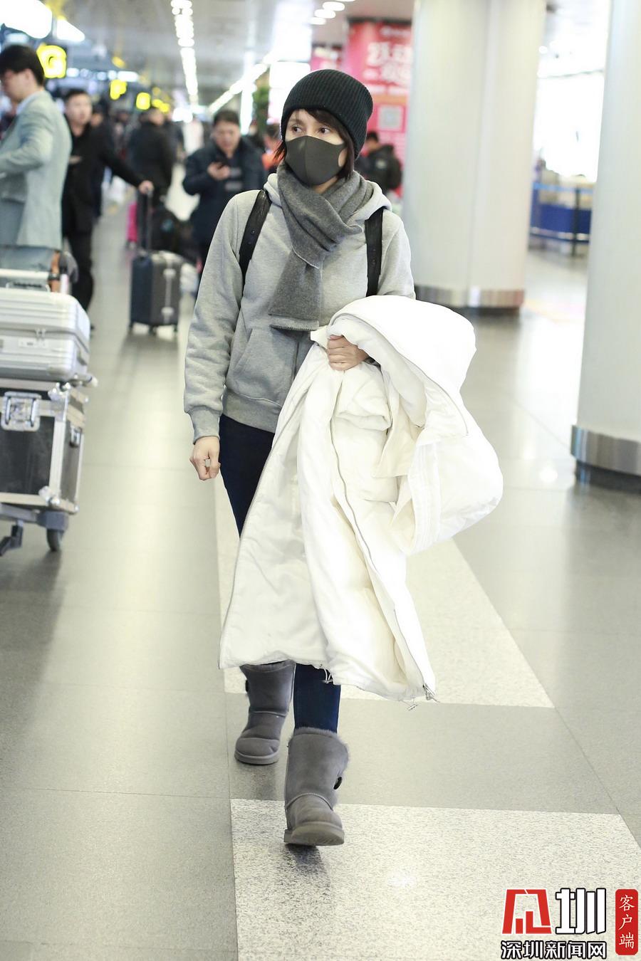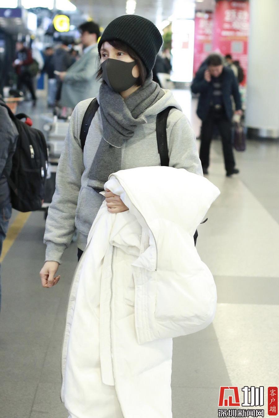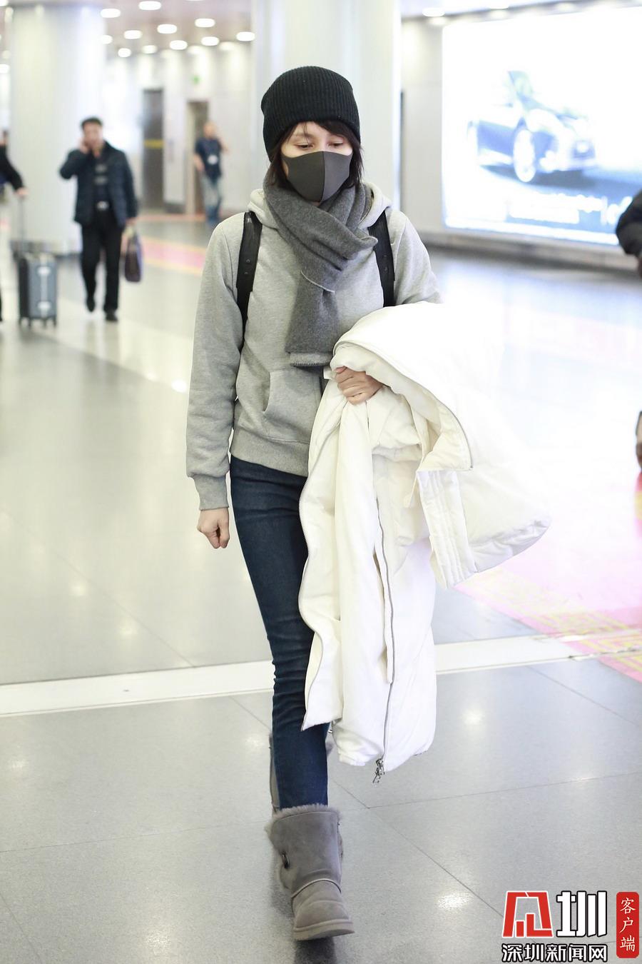 2019年1月5日,北京,袁泉現(xiàn)身機(jī)場(chǎng)。