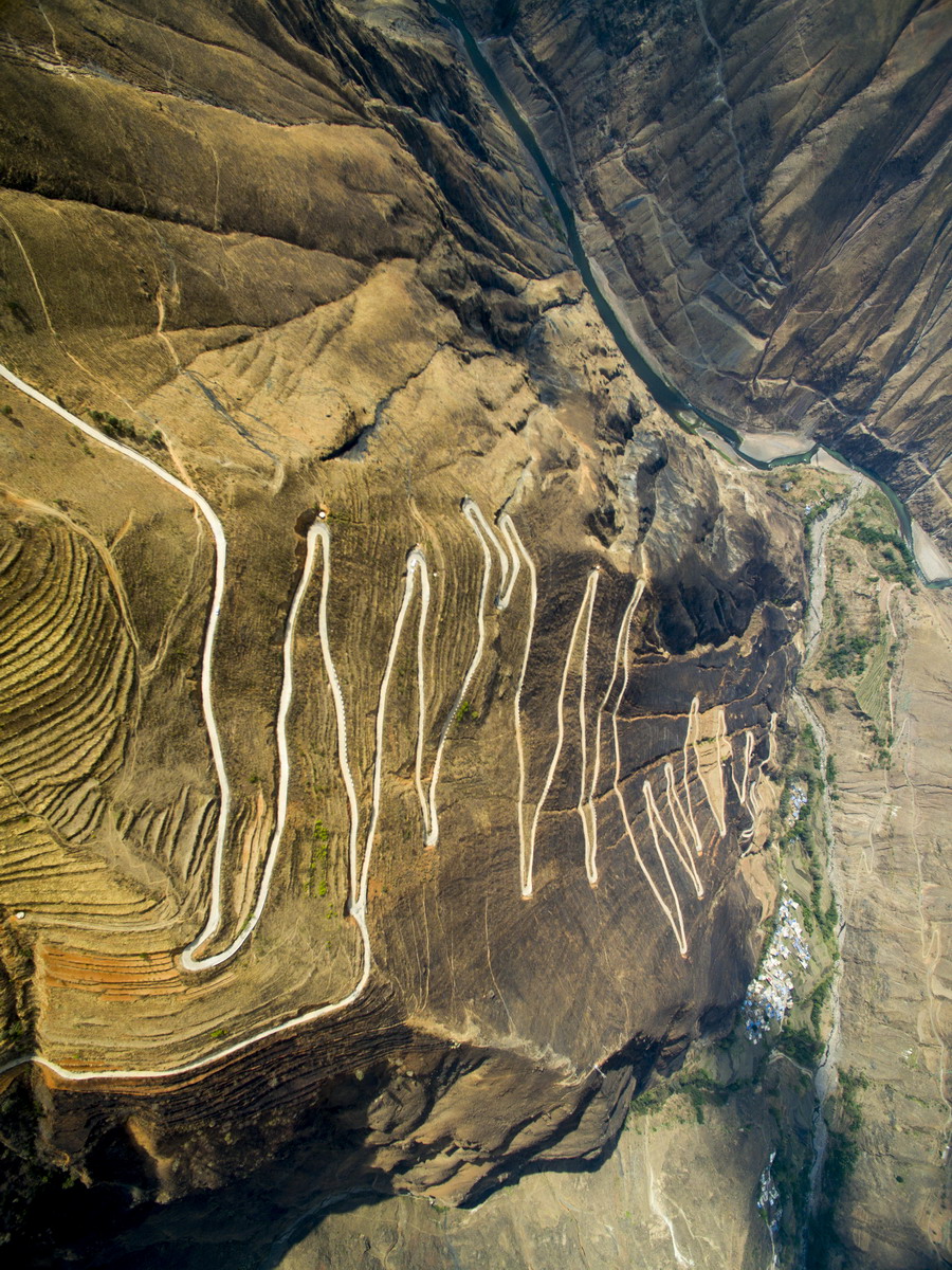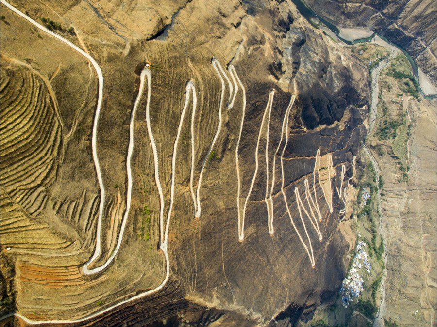 這是“怒江72拐”,該處位于西藏自治區(qū)昌都市八宿縣境內(nèi),是川藏線上一段艱險(xiǎn)與美景并存的山路(10月23日無人機(jī)拍攝)。全長2000多公里的川藏公路,從成都開始,一路向西到終點(diǎn)拉薩,在橫斷山脈、喜馬拉雅山脈和念青唐古拉山脈間蜿蜒盤旋,因海拔落差大,彎道眾多,形成天路奇觀。川藏公路1954年12月25日通車,65年來,國家對(duì)川藏公路進(jìn)行了大規(guī)模改造升級(jí),建設(shè)了眾多橋梁和隧道,行車條件得到明顯改善。新華社記者江宏景攝