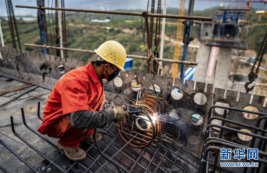 在位于普洱市的木乃河雙線特大橋工程現(xiàn)場(chǎng),工人在施工作業(yè)(4月12日攝)。新華社記者秦晴攝