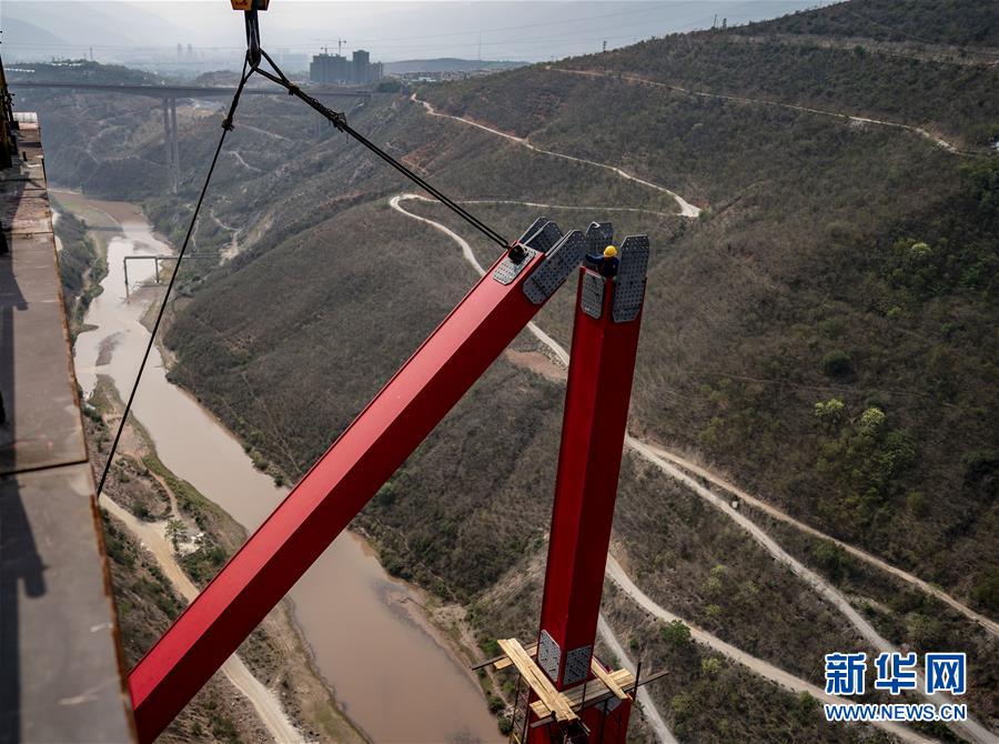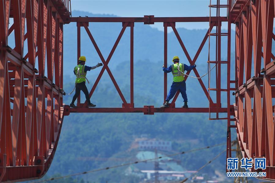 4月8日清晨,工人在中老鐵路元江特大橋上進(jìn)行鋼桁梁架設(shè)作業(yè)(無人機(jī)照片)。4月7日,中老鐵路全線重點(diǎn)控制性工程——元江特大橋迎來關(guān)鍵節(jié)點(diǎn),主橋鋼桁梁正式“邁”過154米高的主橋墩,這是世界同類鐵路橋梁第一高墩。元江特大橋位于云南省元江縣,采用上承式連續(xù)鋼桁梁跨越峽谷,全長(zhǎng)832.2米,建成后,其249米的主跨也將刷新國(guó)內(nèi)同類橋梁跨度紀(jì)錄。新華社記者江文耀攝