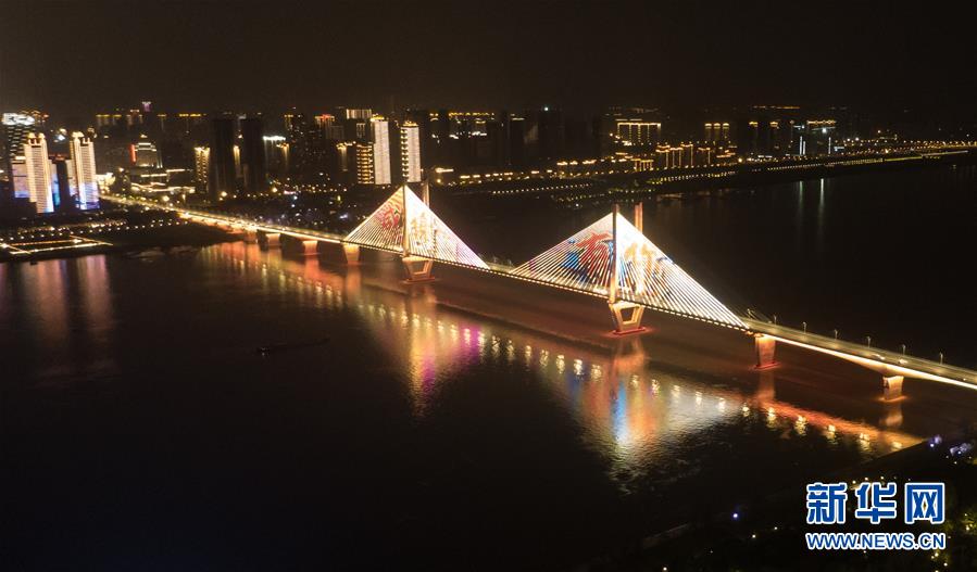 4月8日零時(shí)起,武漢市正式解除離漢離鄂通道管控措施,全市景觀照明開啟(無人機(jī)照片)。新華社記者程敏攝