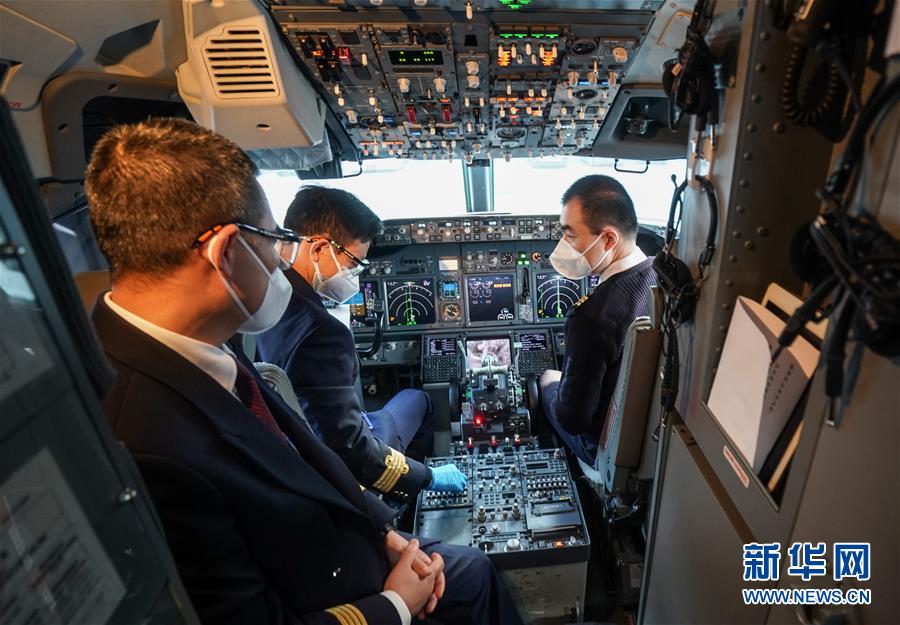 4月8日,東方航空MU2527機(jī)長毛霖準(zhǔn)備出發(fā)。新華社記者程敏攝