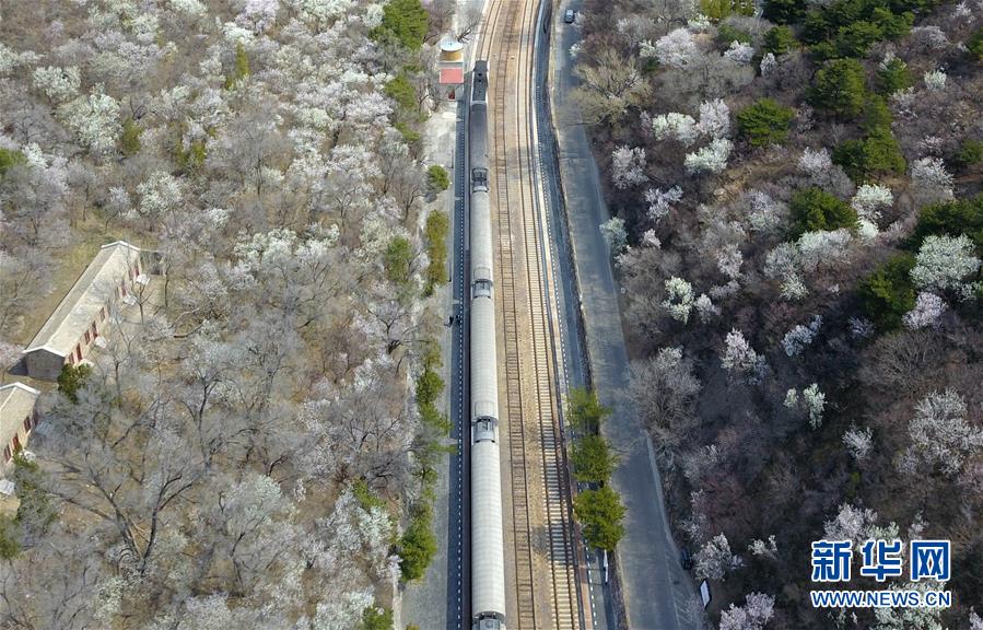 4月8日,北京青龍橋火車站附近春花盛開(無人機(jī)照片)。 新華社記者張晨霖?cái)z