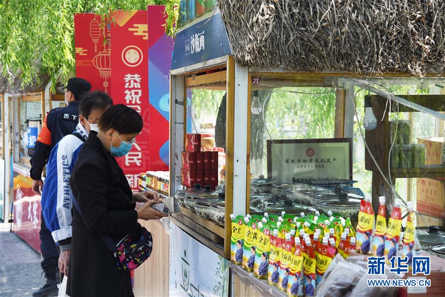 4月13日,游客在濟(jì)南百花洲歷史文化街區(qū)購買文創(chuàng)產(chǎn)品。新華社記者王凱攝
