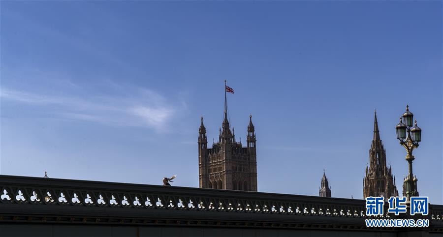 這是4月14日在英國(guó)倫敦拍攝的議會(huì)大廈前空蕩蕩的威斯敏斯特橋。新華社記者韓巖攝