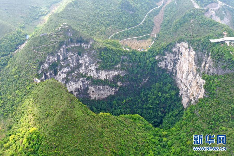 這是4月19日拍攝的中國樂業(yè)—鳳山世界地質(zhì)公園內(nèi)的大石圍天坑(無人機(jī)照片)。中國樂業(yè)—鳳山世界地質(zhì)公園位于廣西西北部,公園內(nèi)地質(zhì)遺跡包括天坑群、天窗群、鐘乳石等,具有重要的科研價值和美學(xué)觀賞價值。