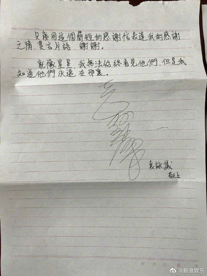 袁詠儀在深隔離14天“畢業(yè)” ,手寫信贊深圳高效暖心!