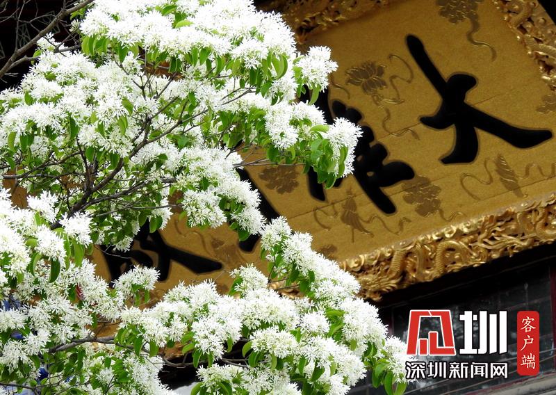 2020年4月22日,連云港市孔望山景區(qū)龍洞庵,800余歲流蘇古樹繁花似錦。