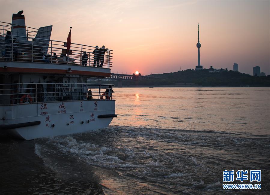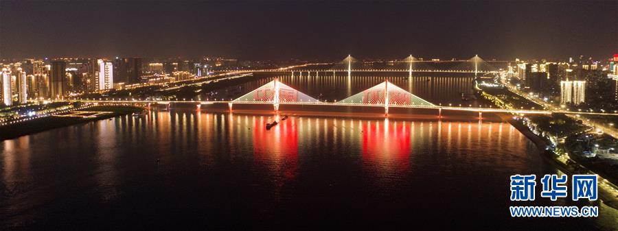 4月14日拍攝的武漢長(zhǎng)江二橋附近夜景。新華社記者才揚(yáng)攝
