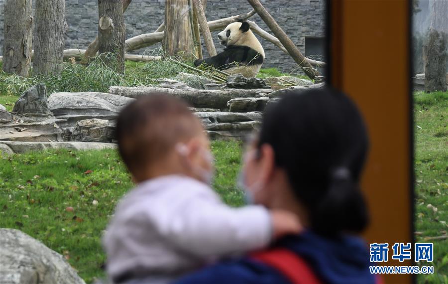 4月22日,大熊貓迎來(lái)參觀的游客。當(dāng)日,在嚴(yán)格落實(shí)疫情防控措施的前提下,武漢動(dòng)物園有序恢復(fù)開放。新華社記者程敏攝