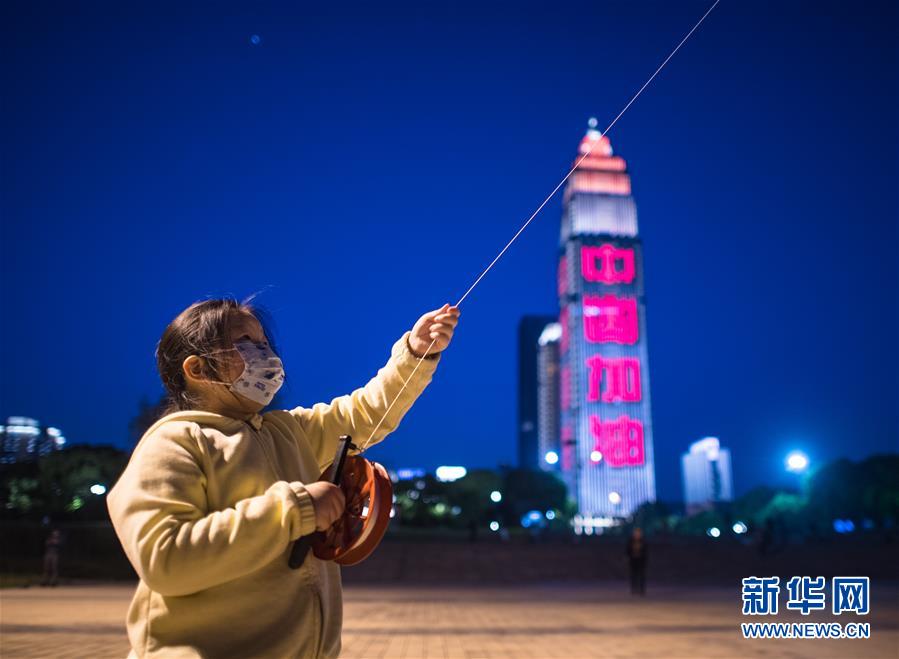 這是4月7日晚在武漢龜山拍攝的夜景(無(wú)人機(jī)照片)。新華社記者肖藝九攝