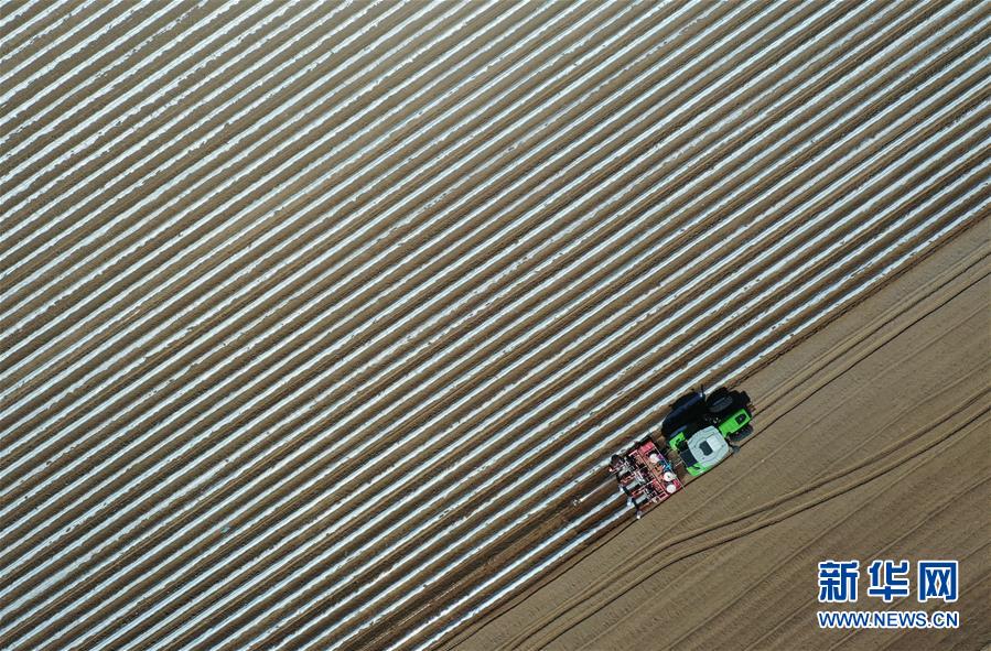 4月25日,灤南縣東黃坨鎮(zhèn)新戶村農(nóng)民使用拖拉機(jī)給準(zhǔn)備栽植煙薯秧苗的土地開(kāi)溝覆膜(無(wú)人機(jī)照片)。近年來(lái),河北省灤南縣利用當(dāng)?shù)赝寥篮蜌夂蛱攸c(diǎn),引導(dǎo)農(nóng)民因地制宜發(fā)展煙薯種植,取得良好效果。目前該縣煙薯種植面積達(dá)3萬(wàn)多畝,每畝年收入達(dá)5000多元。新華社記者楊世堯攝