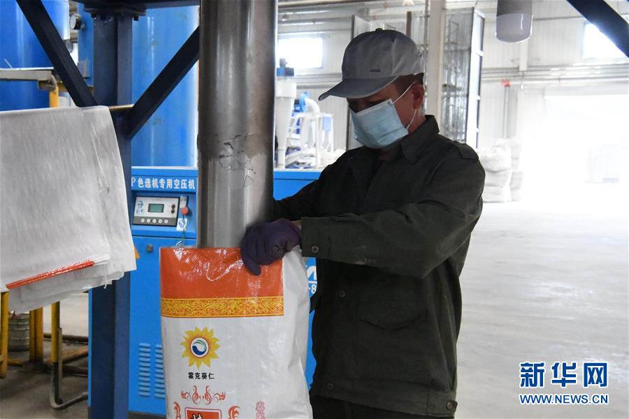 4月26日,中哈霍爾果斯國際邊境合作中心中方配套區(qū)內的霍爾果斯霍克葵仁商貿(mào)有限公司生產(chǎn)車間內,員工將產(chǎn)品裝袋。3月以來,在做好疫情防控的前提下,新疆霍爾果斯“口岸經(jīng)濟”加快復蘇,每天出入其中的商販和游客逐漸增多。與此同時,位于中哈霍爾果斯國際邊境合作中心中方配套區(qū)內的各家企業(yè)正抓緊時間生產(chǎn)。新華社記者顧煜攝