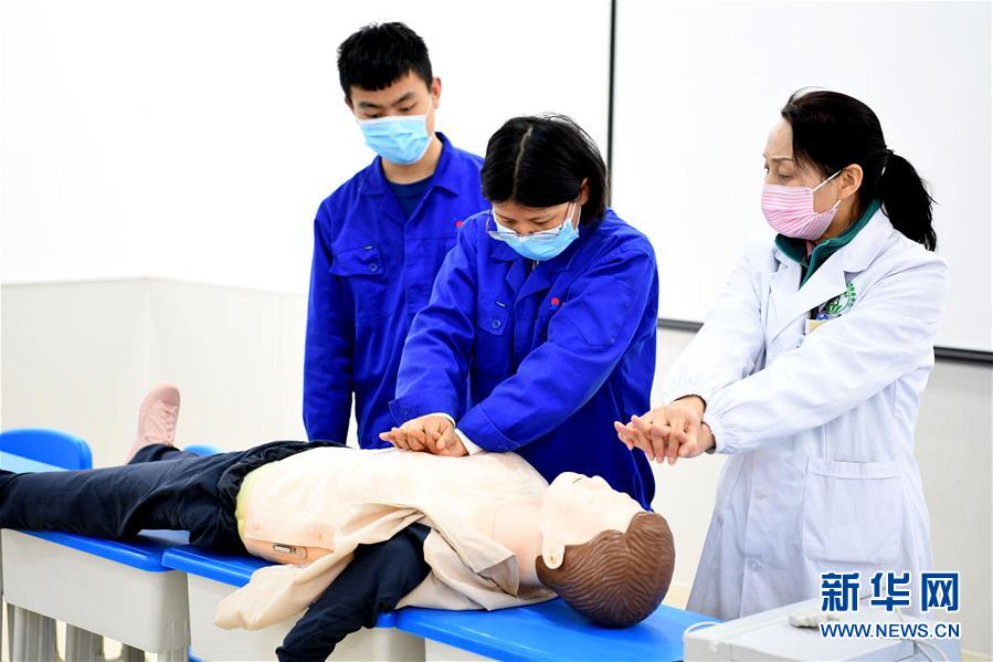 4月27日,常青街道竹西社區(qū)邀請醫(yī)護(hù)人員(右一)為轄區(qū)企業(yè)工人講解急救知識。當(dāng)日,安徽省合肥市包河區(qū)常青街道開展健康講座、職業(yè)病防護(hù)宣傳等系列活動,提高勞動者的自我防護(hù)意識和能力,迎接“五一”國際勞動節(jié)。新華社記者劉軍喜攝