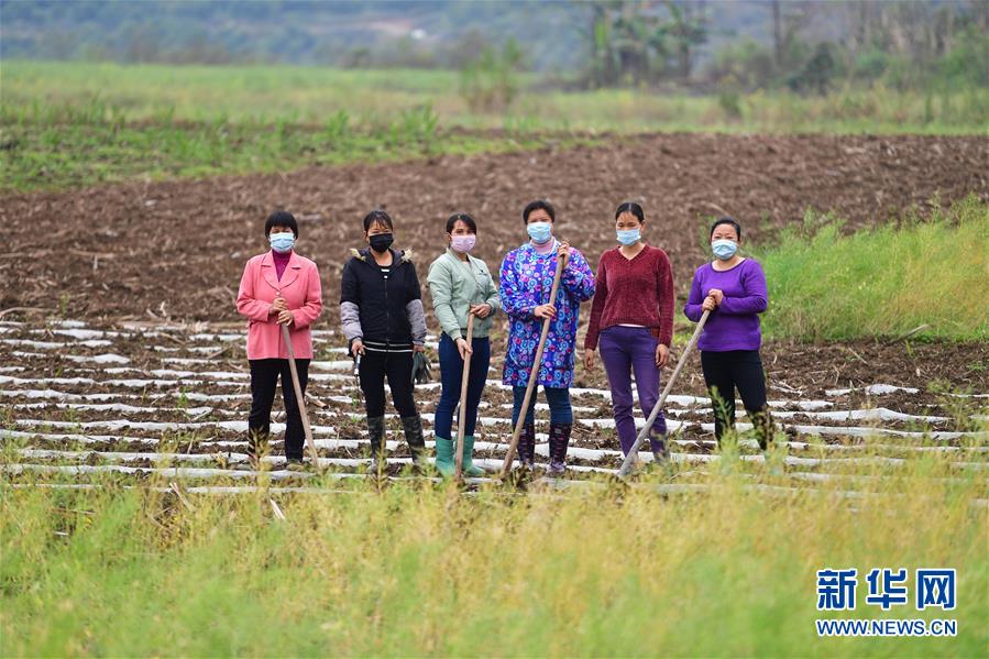 在廣西融水苗族自治縣永樂(lè)鎮(zhèn)毛潭村,38歲的歐意鳳(右三)和返鄉(xiāng)發(fā)展產(chǎn)業(yè)的婦女們(3月13日攝)。