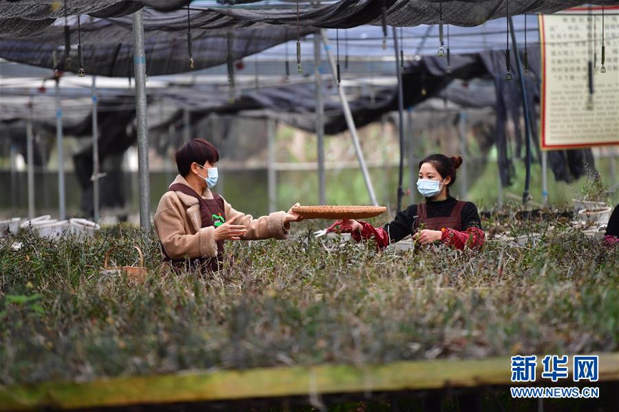 在廣西融水苗族自治縣七彩農(nóng)場(chǎng),梁壬梅(左)和脫貧戶何春瓊在采收石斛(3月13日攝)。