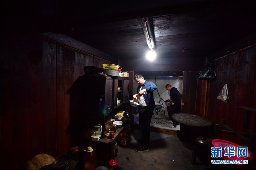 李義成(左)在村民家準(zhǔn)備晚餐(4月26日攝)。新華社記者黃孝邦攝