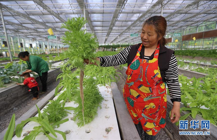 4月29日,珙縣三合村的村民在現(xiàn)代農(nóng)業(yè)產(chǎn)業(yè)示范園區(qū)收獲無土栽培的蔬菜苦菊。新華社記者江宏景攝