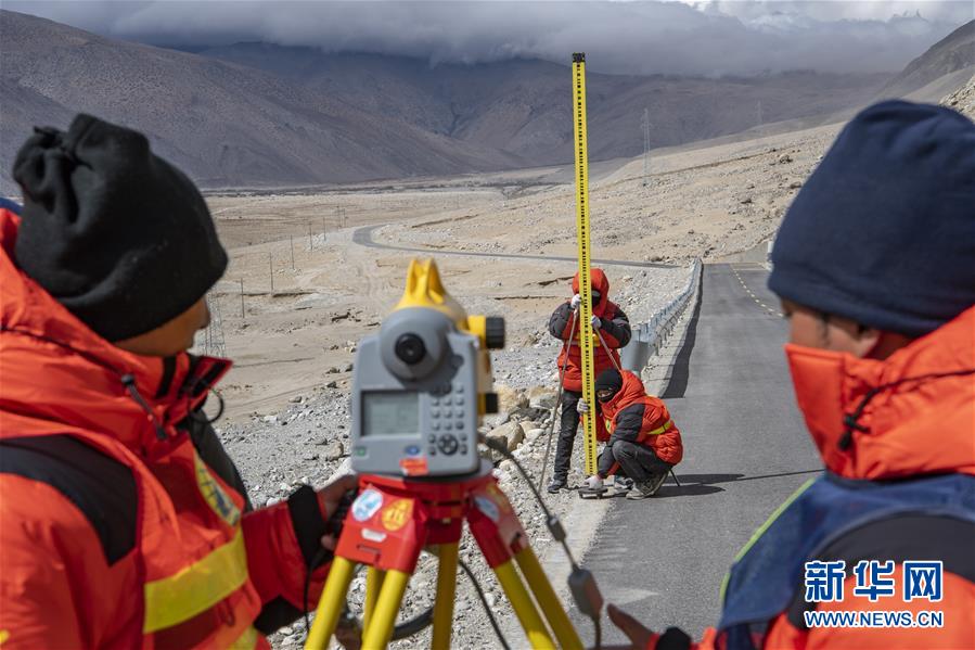 測(cè)一大隊(duì)隊(duì)員在西藏定日縣曲當(dāng)鄉(xiāng)境內(nèi)進(jìn)行水準(zhǔn)測(cè)量(4月18日攝)。水準(zhǔn)測(cè)量是一種利用提供水平視線的儀器(如水準(zhǔn)儀、水準(zhǔn)標(biāo)尺),測(cè)定地面不同點(diǎn)之間的高差,并以此推算高度的一種方法,是經(jīng)典大地測(cè)量的重要技術(shù)之一。在目前正在進(jìn)行的2020珠峰高程測(cè)量中,部分國測(cè)一大隊(duì)隊(duì)員承擔(dān)了水準(zhǔn)測(cè)量的任務(wù)。新華社記者孫非攝