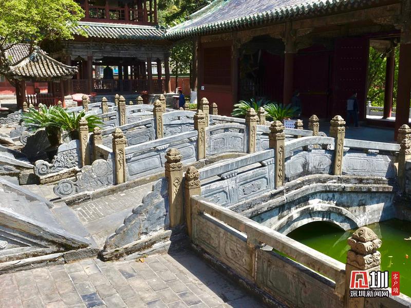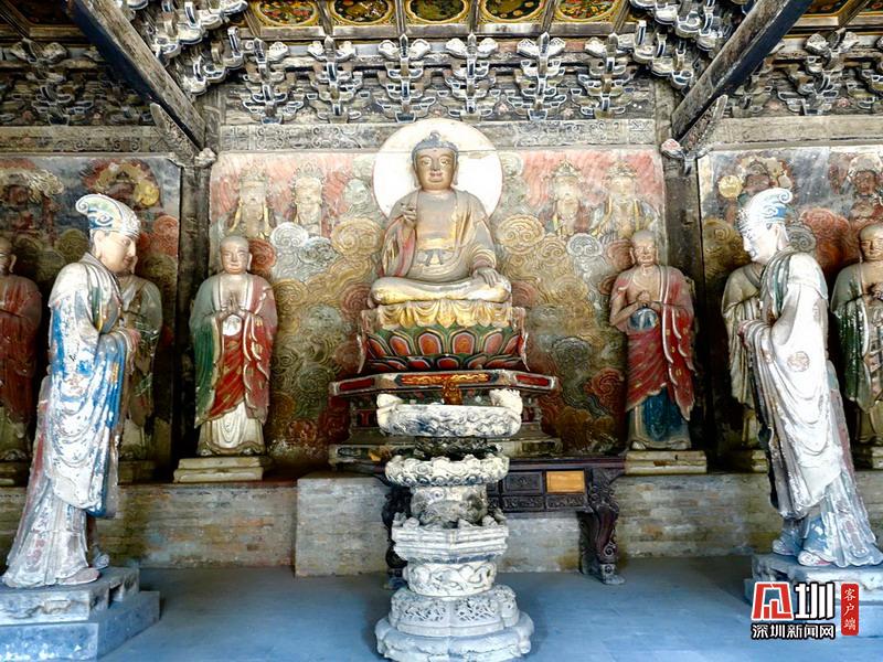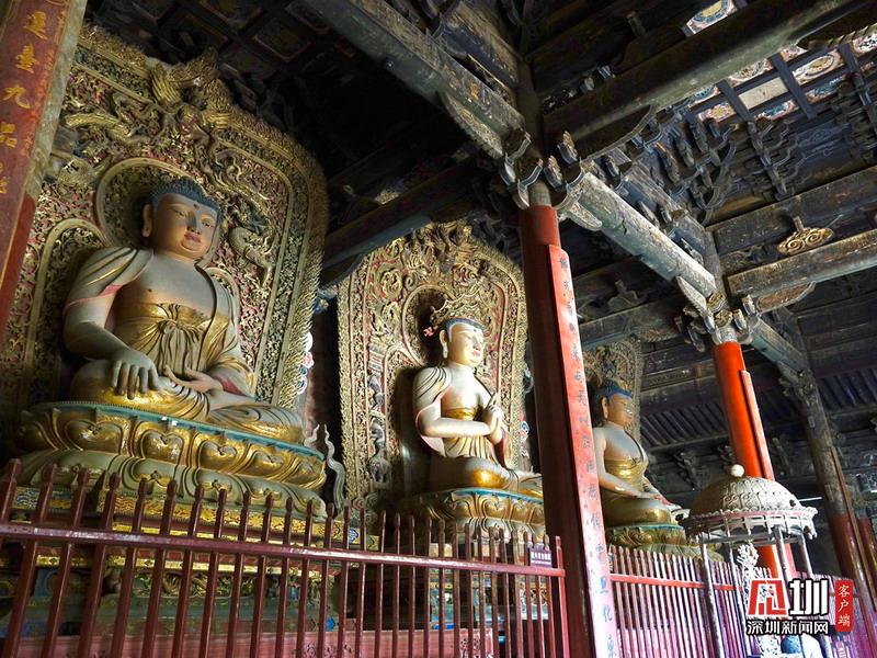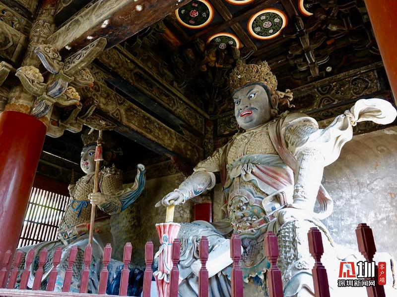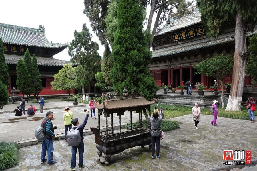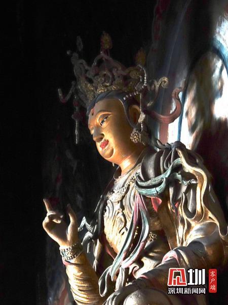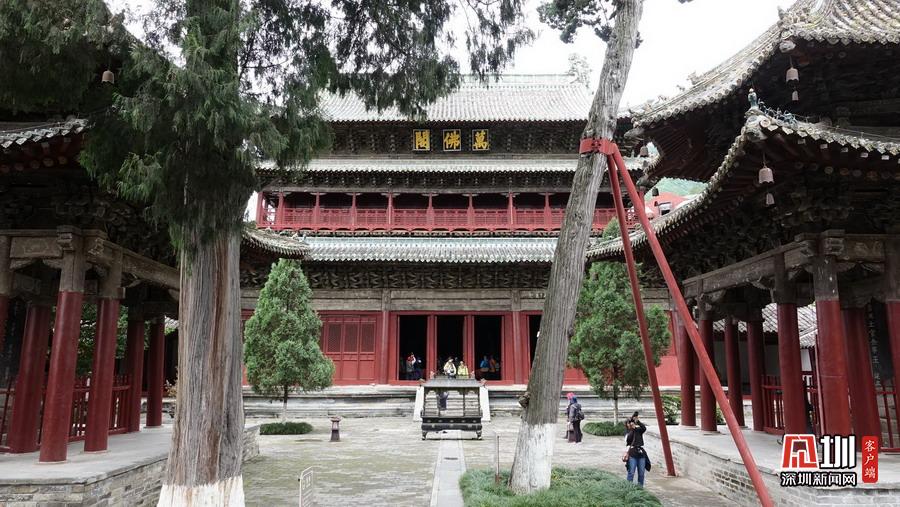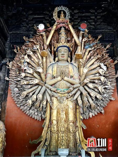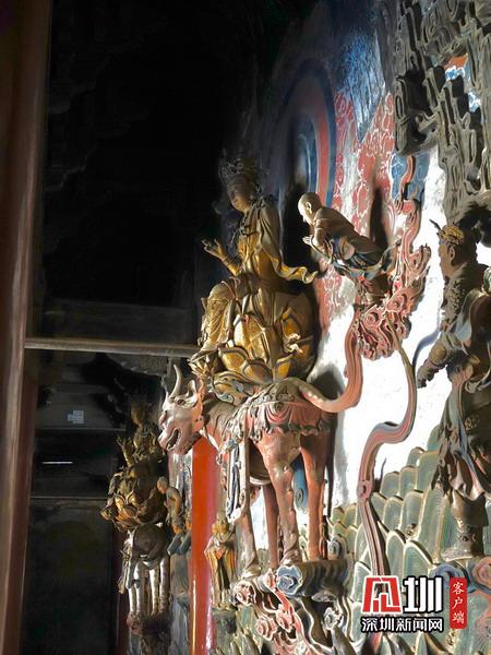 報(bào)恩寺布局結(jié)構(gòu)酷似北京紫禁城,被稱為“深山故宮”。寺內(nèi)古木參天,氣象森嚴(yán),飛檐凌空,金碧輝煌。大悲殿中的用整根楠木雕成的千手千眼觀音像、華嚴(yán)藏中的轉(zhuǎn)輪經(jīng)藏和泥塑蟠龍,以及遍布全寺的彩繪壁畫,都是世間罕見的藝術(shù)珍品。李仁奇攝