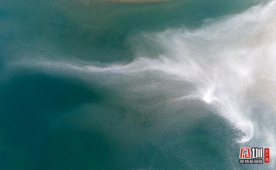 2020年5月5日無人機拍攝的香根吉林湖水景觀。湖水景色如同銀河般璀璨。