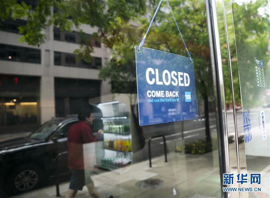 5月6日,在美國首都華盛頓,一家披薩店因新冠疫情暫時關(guān)閉。美國自動數(shù)據(jù)處理公司(ADP)6日公布的數(shù)據(jù)顯示,由于新冠疫情沖擊美國經(jīng)濟和企業(yè),4月美國私營部門大幅削減約2023.6萬個就業(yè)崗位。新華社記者劉杰攝