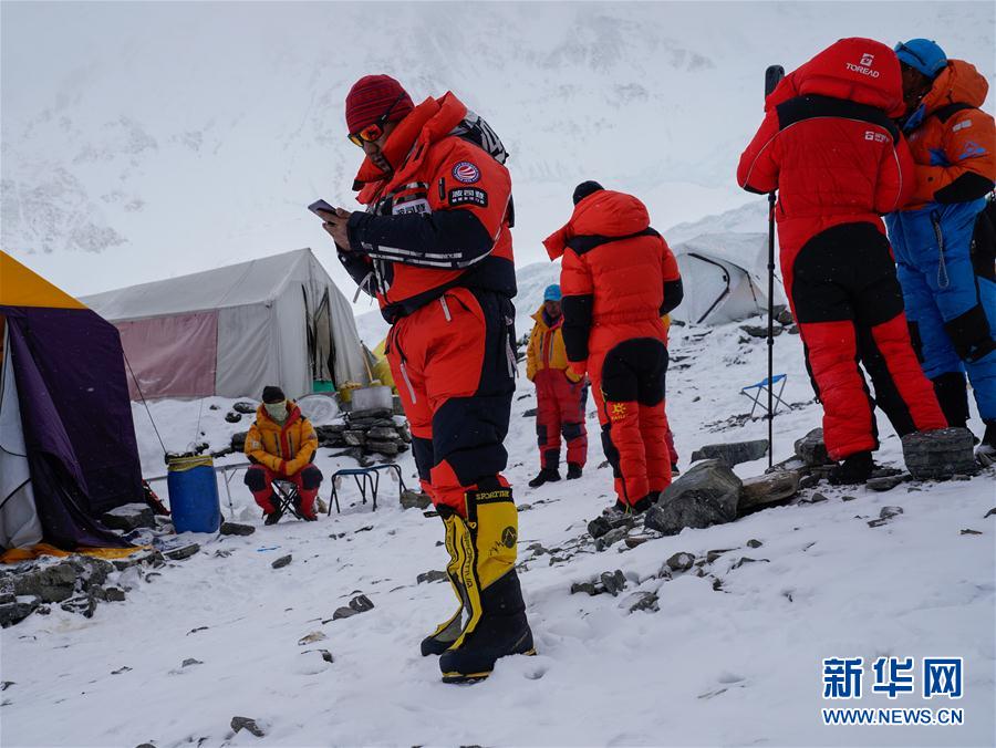 5月7日,2020珠峰高程測(cè)量登山隊(duì)進(jìn)駐海拔6500米的前進(jìn)營(yíng)地。新華社特約記者扎西次仁攝
