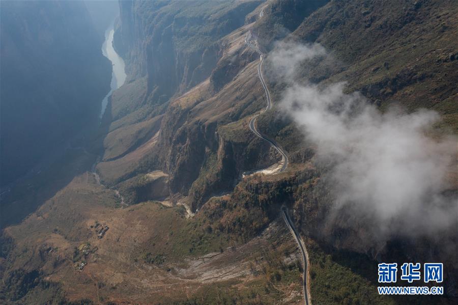 這是布拖縣阿布洛哈村通村公路(2019年12月29日攝,無(wú)人機(jī)照片)。新華社記者江宏景攝