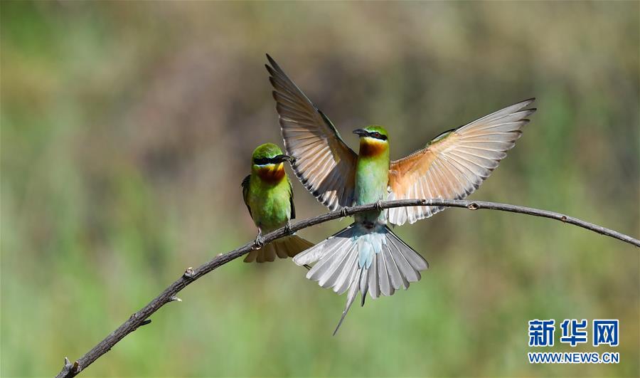近日,百余只栗喉蜂虎和少量藍(lán)喉蜂虎來(lái)到海南省海口市西海岸多個(gè)地點(diǎn)棲息繁衍,為椰城增添一抹亮色。據(jù)了解,蜂虎每年春夏都會(huì)回到固定地點(diǎn)繁殖,由于習(xí)性特殊,蜂虎需要在新形成的沙質(zhì)土坡上做窩。為此,海口市相關(guān)部門(mén)每年在蜂虎到來(lái)之前,會(huì)在蜂虎棲息地整坡清樹(shù),為蜂虎營(yíng)造良好的棲息環(huán)境。