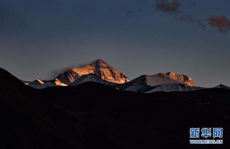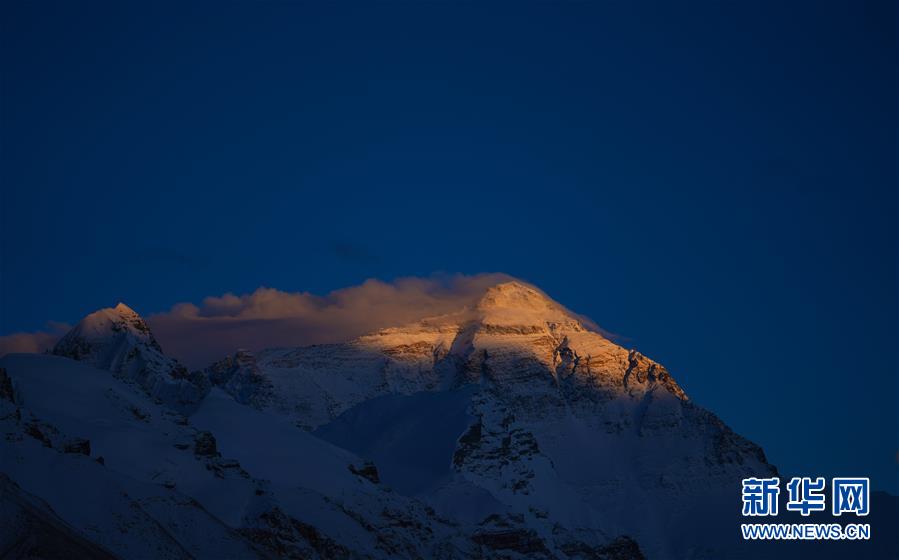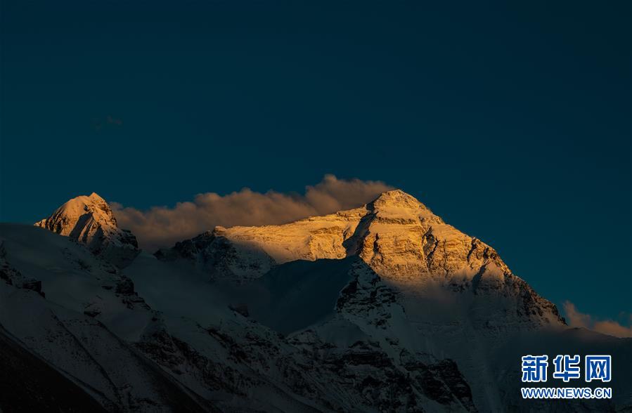 這是5月3日拍攝的夕陽下的珠峰。世界第一高峰珠穆朗瑪峰終年積雪,頂峰云霧繚繞,美不勝收。新華社記者普布扎西攝