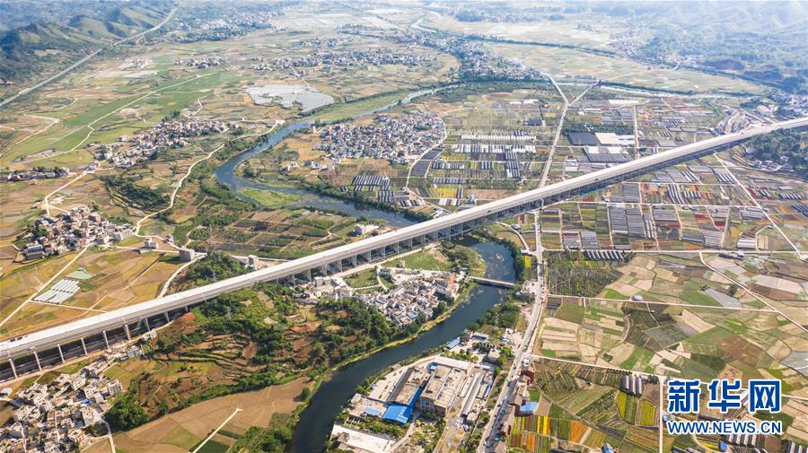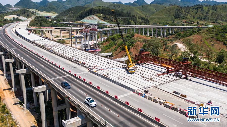 都安高速改擴建路段的惠水特大橋與惠水樞紐(無人機照片,5月9日攝)。 新華社記者 陶亮 攝