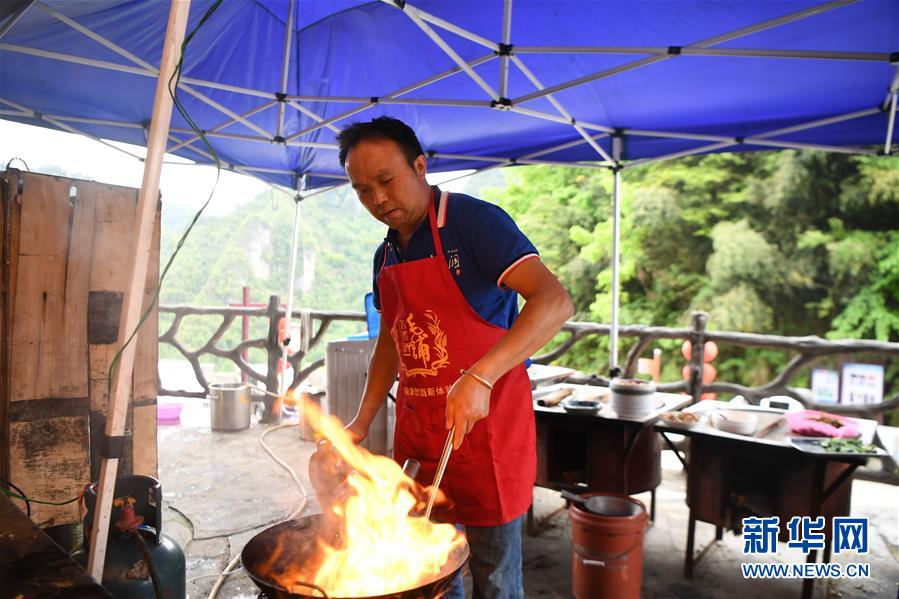 施六金在自家開的農(nóng)家樂為客人準(zhǔn)備午餐(4月25日攝)。1973年出生于十八洞村的施六金,由于父親患病很早就放棄學(xué)業(yè)和母親扛起了家庭的重?fù)?dān)。為了生活,他還曾遠(yuǎn)去東南亞打工。2015年,看到家鄉(xiāng)的變化,施六金回到村里開起了農(nóng)家樂,年度家庭人均純收入也從2014年的1715元增長到了2019年的35696元。2018年,施六金與心愛的人組建了家庭。今年初,施六金與愛人迎來了一個(gè)大胖小子。“做人做事要懂得回報(bào)和感恩?!笔┝鸾o剛出生的兒子取名施澤恩。新華社記者薛宇舸攝