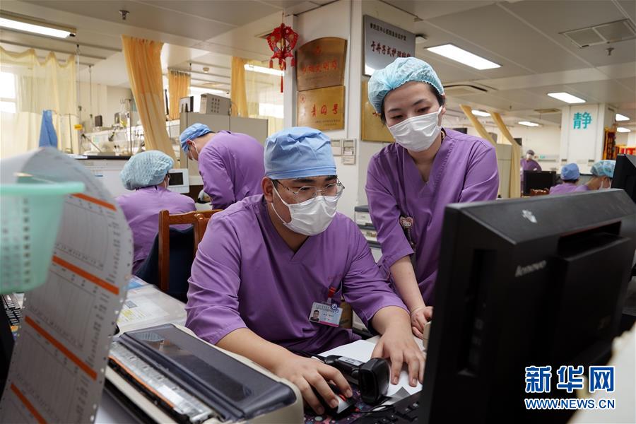 5月10日,在上海市普陀區(qū)中心醫(yī)院急診重癥監(jiān)護室,護士們在工作。新華社記者劉穎攝
