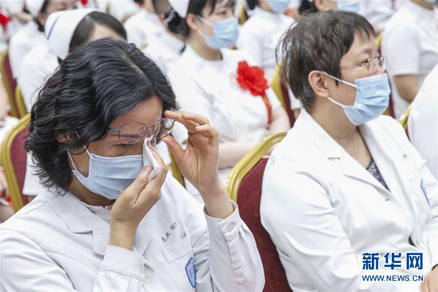 5月11日,北京大學(xué)人民醫(yī)院援鄂抗疫醫(yī)療隊(duì)感控專家高燕教授聽?wèi)?zhàn)“疫”故事時(shí)感動(dòng)落淚。在國際護(hù)士節(jié)到來之際,北京大學(xué)人民醫(yī)院11日舉辦慶祝護(hù)士節(jié)暨優(yōu)秀集體和個(gè)人表彰活動(dòng),并邀請?jiān)踽t(yī)療隊(duì)護(hù)士代表分享戰(zhàn)“疫”故事。我國今年護(hù)士節(jié)的主題為“致敬護(hù)士隊(duì)伍,攜手戰(zhàn)勝疫情”。新華社記者張玉薇攝
