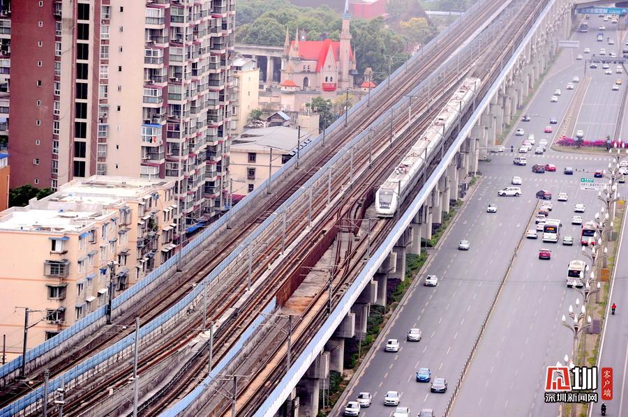 2020年5月11日,四川省成都市,犀浦站是全國(guó)首個(gè)鐵路與地鐵換乘車站。圖為動(dòng)車、地鐵同時(shí)運(yùn)行在線路上。