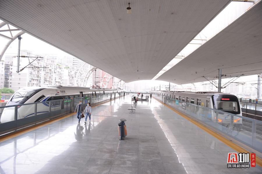 2020年5月11日,四川省成都市,動(dòng)車(chē)和地鐵??吭谙只疖?chē)站。該站在全國(guó)首創(chuàng)鐵路與地鐵同臺(tái)換乘記錄,提升了市域鐵路銜接公共交通的效率。