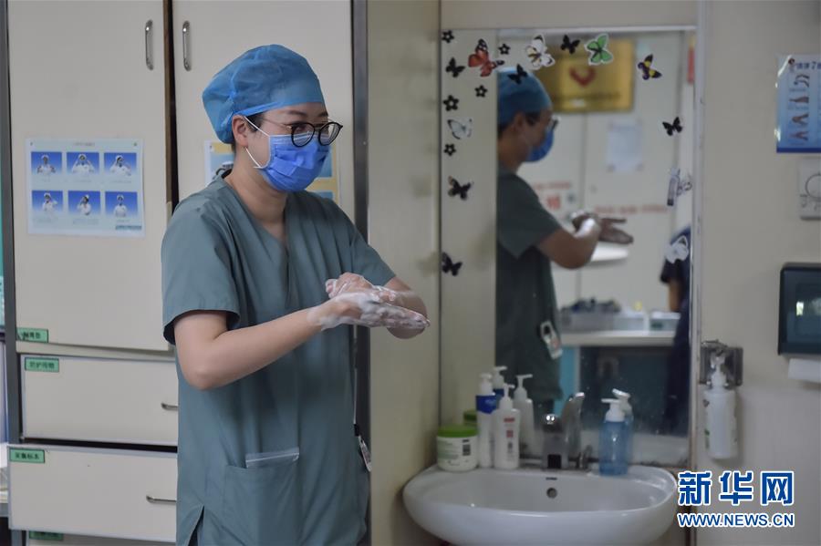 5月11日,在北京地壇醫(yī)院感染二科護士站,一名護士在洗手。北京地壇醫(yī)院是北京市收治新冠肺炎患者的定點醫(yī)院之一,醫(yī)院的醫(yī)護人員一直奮戰(zhàn)在抗擊疫情的一線。在國際護士節(jié)前夕,記者前往北京地壇醫(yī)院,記錄下抗疫一線護士的日常工作狀態(tài)。新華社記者彭子洋攝