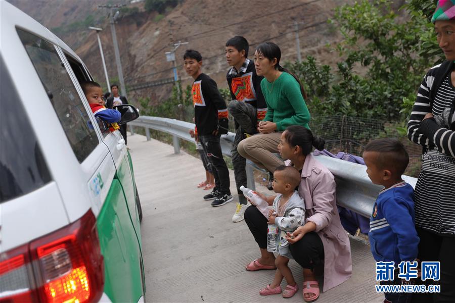 5月12日,四川省昭覺縣阿土列爾村第一批26戶貧困戶坐上開往昭覺縣易地扶貧搬遷縣城集中安置點(diǎn)的新家,與其他村民道別。新華社記者江宏景攝