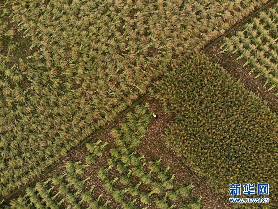5月13日,在貴州省黔西縣洪水鎮(zhèn)解放村,村民在采收油菜籽(無(wú)人機(jī)照片)。新華社記者楊楹攝