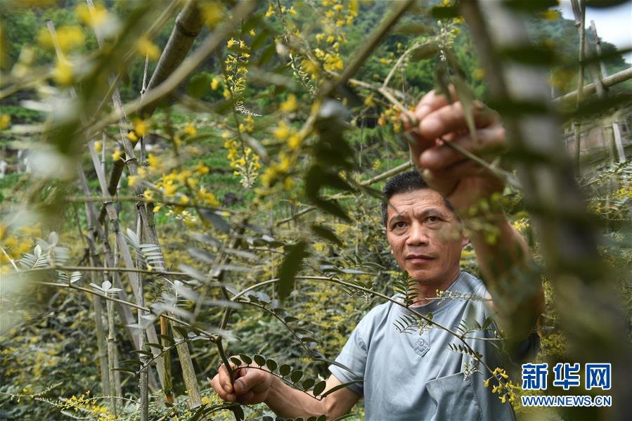 5月13日,在廣西環(huán)江毛南族自治縣下南鄉(xiāng)下塘村,村民在管護中草藥。新華社記者陸波岸攝