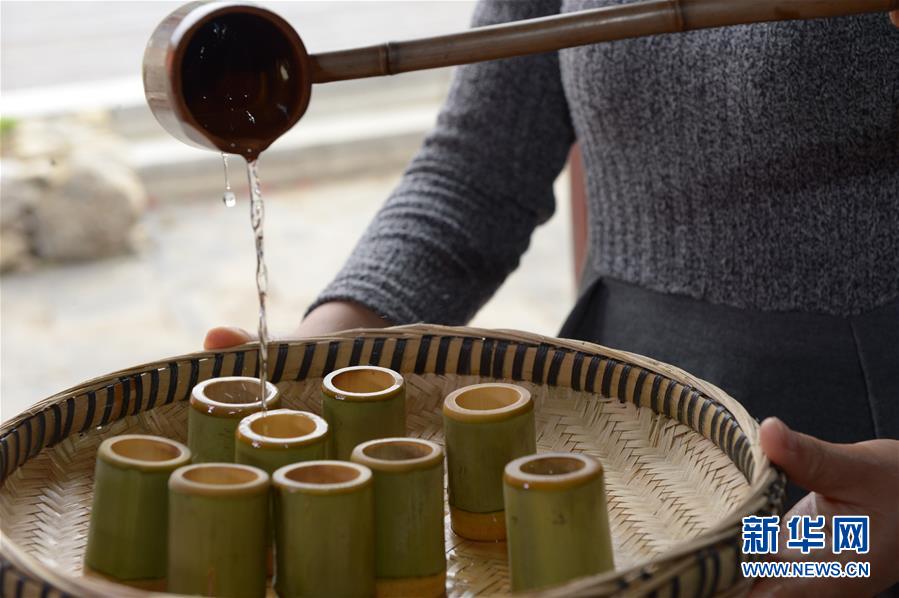 5月14日,在貴州省畢節(jié)市百里杜鵑管理區(qū)黃泥鄉(xiāng)龍?zhí)链逡患揖谱鞣?,村民在品嘗剛出的蒸餾酒。貴州省畢節(jié)市百里杜鵑管理區(qū)黃泥鄉(xiāng)龍?zhí)链宓凝執(zhí)凉啪?,因獨特的古法釀酒技術,口感獨特而遠近聞名。全村有釀酒戶142戶,年產量達45萬多公斤,龍?zhí)凉啪七h銷重慶、廣東、浙江等地,龍?zhí)凉啪埔殉蔀辇執(zhí)寥嗽鍪盏闹匾獊碓?。新華社記者楊楹攝