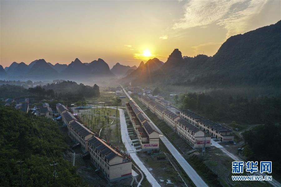 這是廣西南丹縣“千家瑤寨·萬戶瑤鄉(xiāng)”八圩瑤寨易地扶貧搬遷安置點(4月29日攝,無人機照片)。新華社記者周華攝