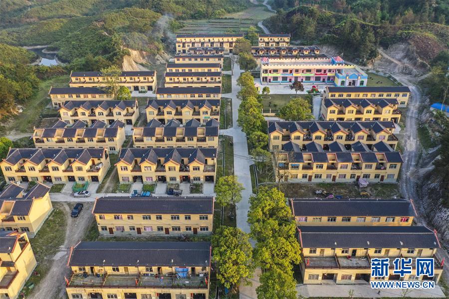 這是廣西南丹縣“千家瑤寨·萬戶瑤鄉(xiāng)”八圩瑤寨易地扶貧搬遷安置點(4月29日攝,無人機照片)。新華社記者曹祎銘攝