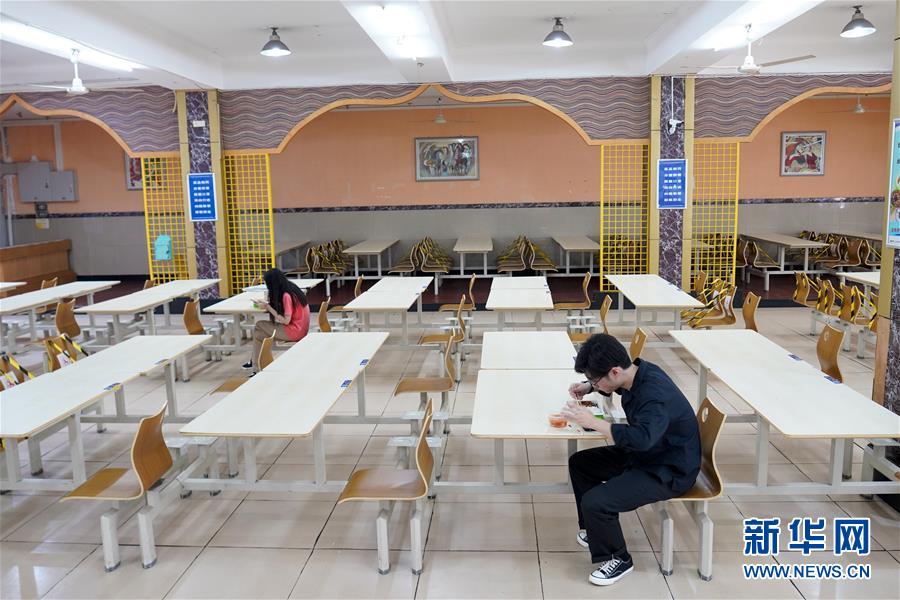 5月15日,在西南大學(xué)的一個學(xué)生食堂內(nèi),學(xué)生按照要求一人一桌吃午餐。當日,重慶西南大學(xué)迎來疫情以來首批返校大學(xué)生。據(jù)介紹,按照疫情防控的需要,重慶市高校2020年春季學(xué)期從5月11日起按照“一校一策”原則,實行錯峰錯時分批次有序開學(xué)復(fù)課。新華社記者劉潺攝