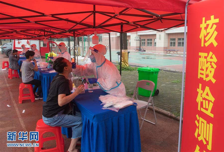 5月15日,在武漢東西湖區(qū)吳家山第一小學(xué)操場檢測點(diǎn),工作人員對市民進(jìn)行核酸檢測。近日,武漢將對全市市民有序開展核酸檢測,進(jìn)一步摸清無癥狀感染者底數(shù),進(jìn)而有效管控。新華社記者肖藝九攝
