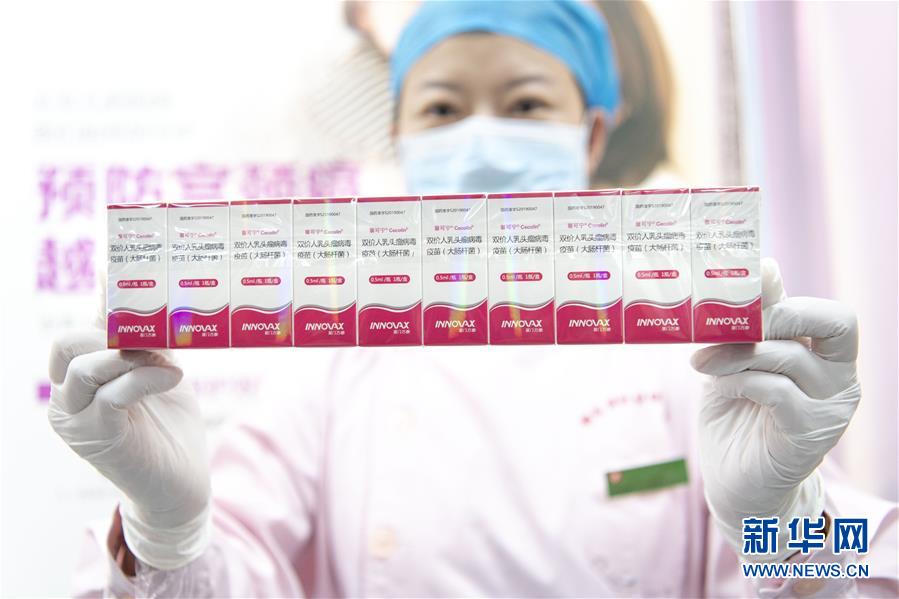 5月18日,在湖北省婦幼保健院,護士展示國產HPV疫苗。當日,首批國產HPV疫苗(人乳頭瘤病毒疫苗)在武漢的湖北省婦幼保健院開始接種。新華社記者熊琦攝
