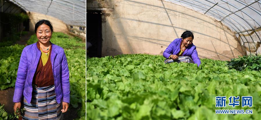 拼版照片:左圖為西藏昌都市左貢縣旺達(dá)鎮(zhèn)列達(dá)村村民阿旺拉珍;右圖為阿旺拉珍在左貢縣旺達(dá)鎮(zhèn)列達(dá)村的蔬菜大棚里忙碌。近年來,列達(dá)村大力發(fā)展蔬菜產(chǎn)業(yè),建起溫室大棚30座,按照每4戶1座大棚的模式進(jìn)行種植、管理和銷售。阿旺拉珍在大棚里種了白菜、辣椒和白蘿卜,一年收入近萬元(5月7日攝)。新華社記者詹彥攝