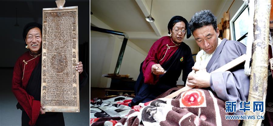 拼版照片:左圖為西藏昌都市江達(dá)縣波羅鄉(xiāng)外沖村村民澤培;右圖為在江達(dá)縣波羅鄉(xiāng)木松民族手工藝有限責(zé)任公司,澤培(左)在指導(dǎo)學(xué)生。澤培是當(dāng)?shù)刂牟_木刻藝人,波羅木刻由于做工繁復(fù),太消耗體能,收入不高,波羅木刻藝人的數(shù)量在過去幾十年間急劇減少。為保護(hù)和傳承波羅木刻,近年來,江達(dá)縣成立了波羅鄉(xiāng)木松民族手工藝有限責(zé)任公司。澤培招收了幾十名學(xué)徒傳授技藝,經(jīng)過練習(xí),學(xué)徒們已經(jīng)成為熟練的木刻藝人,每人每月有4000多元的收入(5月1日攝)。新華社記者詹彥攝