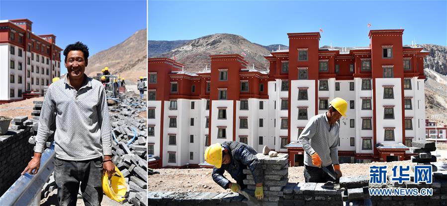 拼版照片:左圖為西藏昌都市八宿縣吉達(dá)鄉(xiāng)仲沙村村民平措;右圖為平措(右)在八宿縣西巴易地扶貧搬遷安置點(diǎn)的工地上干活。2019年,平措和家人搬遷到西巴易地扶貧搬遷安置點(diǎn),住進(jìn)了75平方米的新居,平措還在安置點(diǎn)找到了一份建筑工的工作,每月有4000多元的收入。在此之前,平措靠在縣城打零工掙錢(5月10日攝)。新華社記者詹彥攝